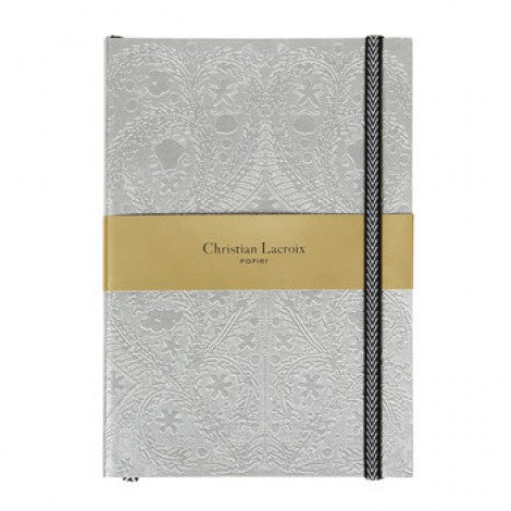 This notebook is embossed with the famous Paseo design on beautiful faux leather. Includes a striped elastic closure and ribbon marker with a lay-flat construction for ease of use.