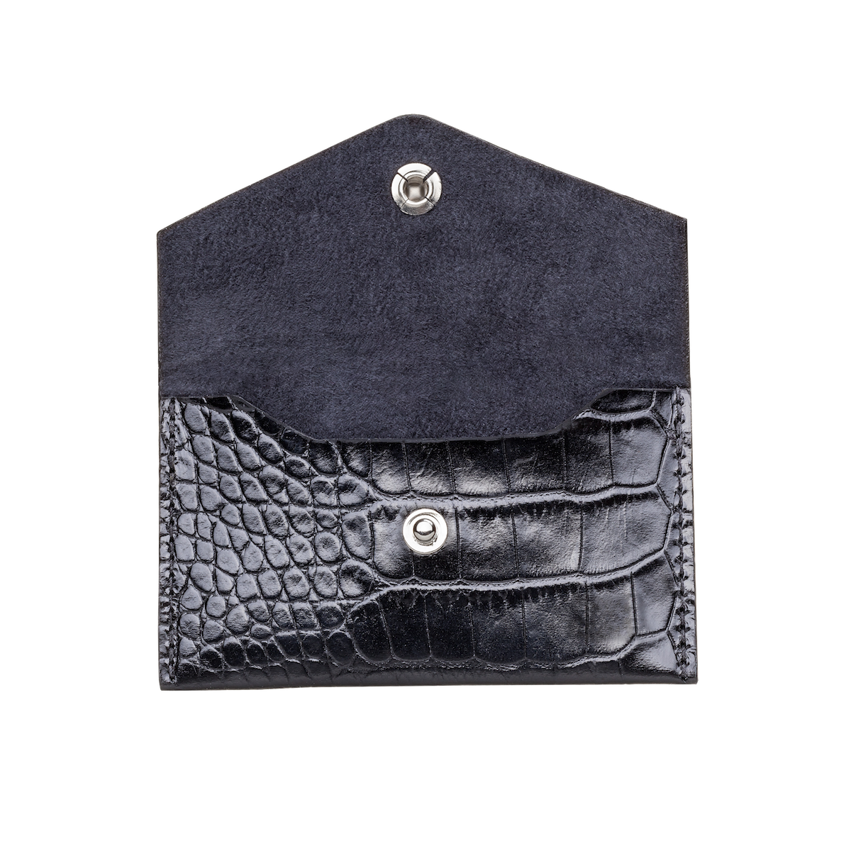 Snap-open top with room for 20 full-weight cards. Also available in red suede interior.