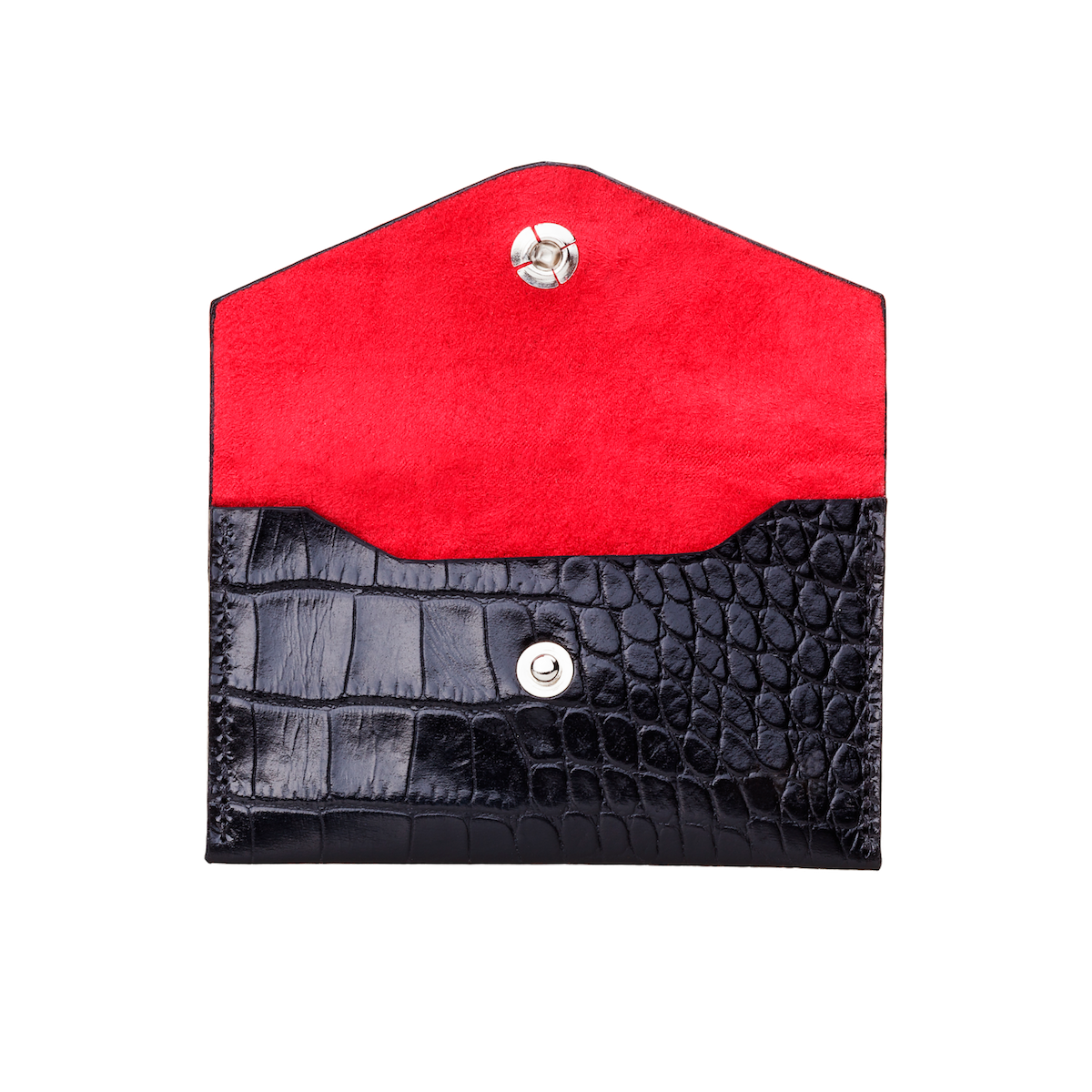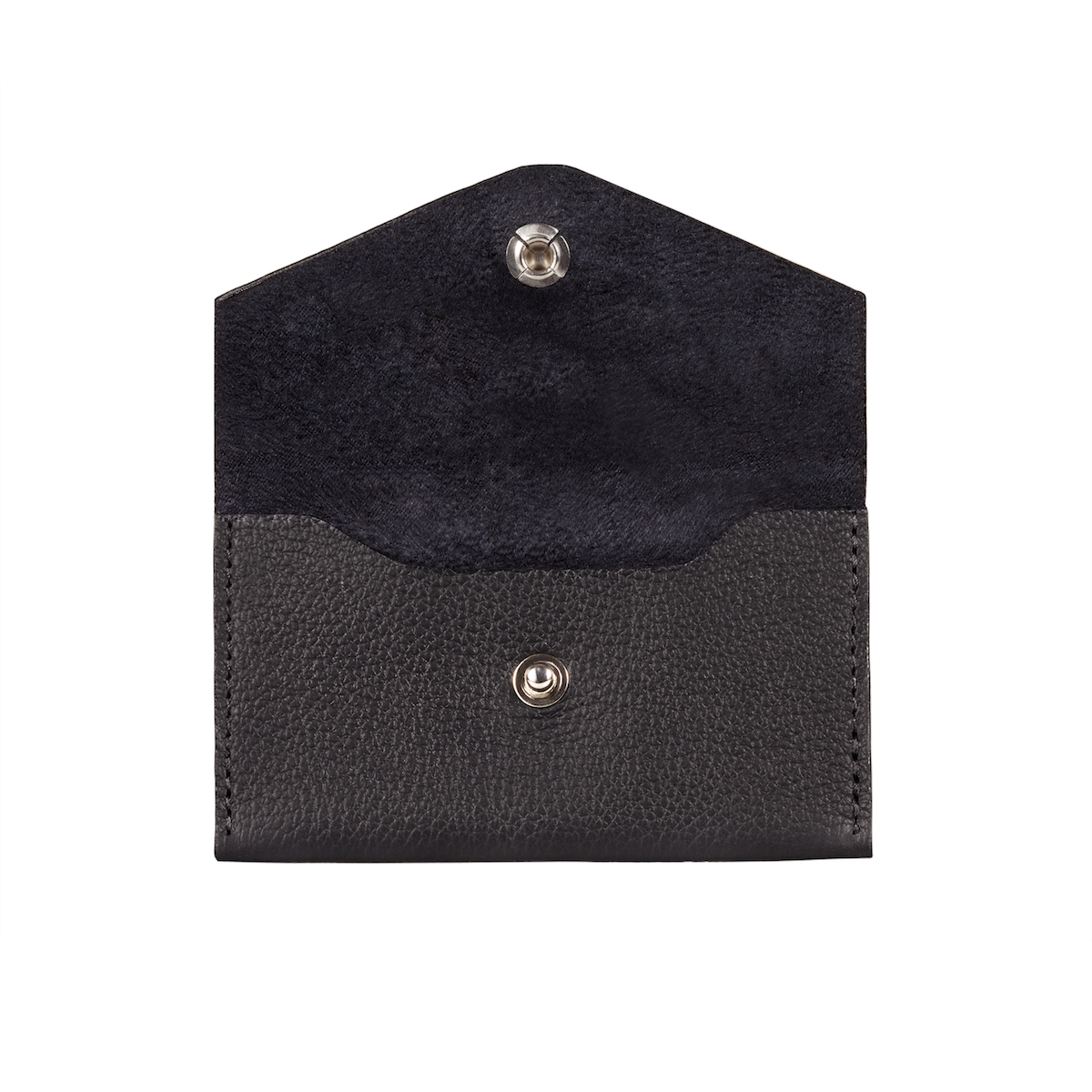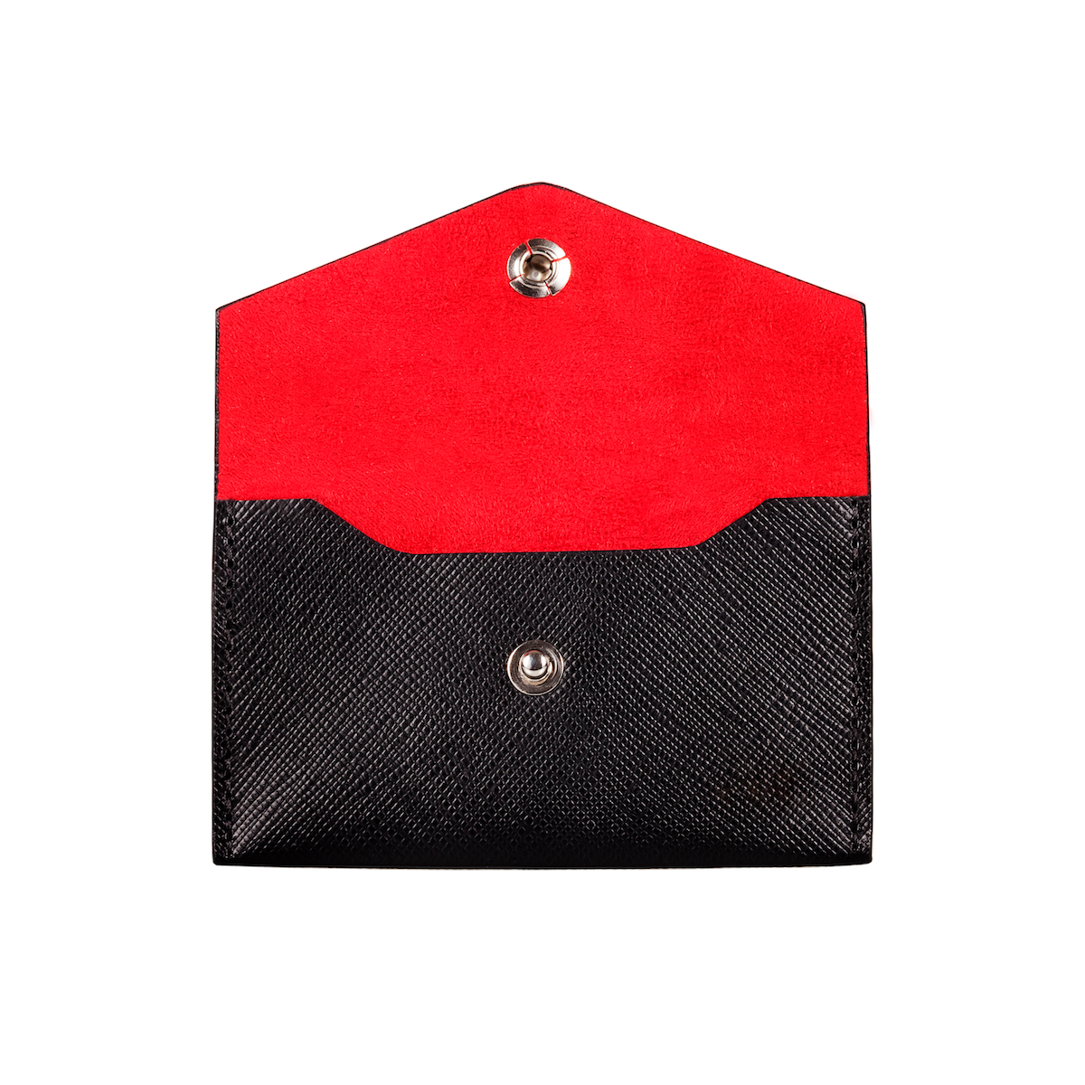 Snap-open top with room for 20 full-weight cards. Also available in black suede interior.